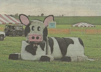 “Polly the Hay Bale Cow” sits ready to greet visitors coming to Farm Tech Fest,