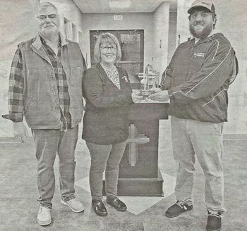 Neillsville’s St. John’s Lutheran School Principal Mike Allard presents Joel and
