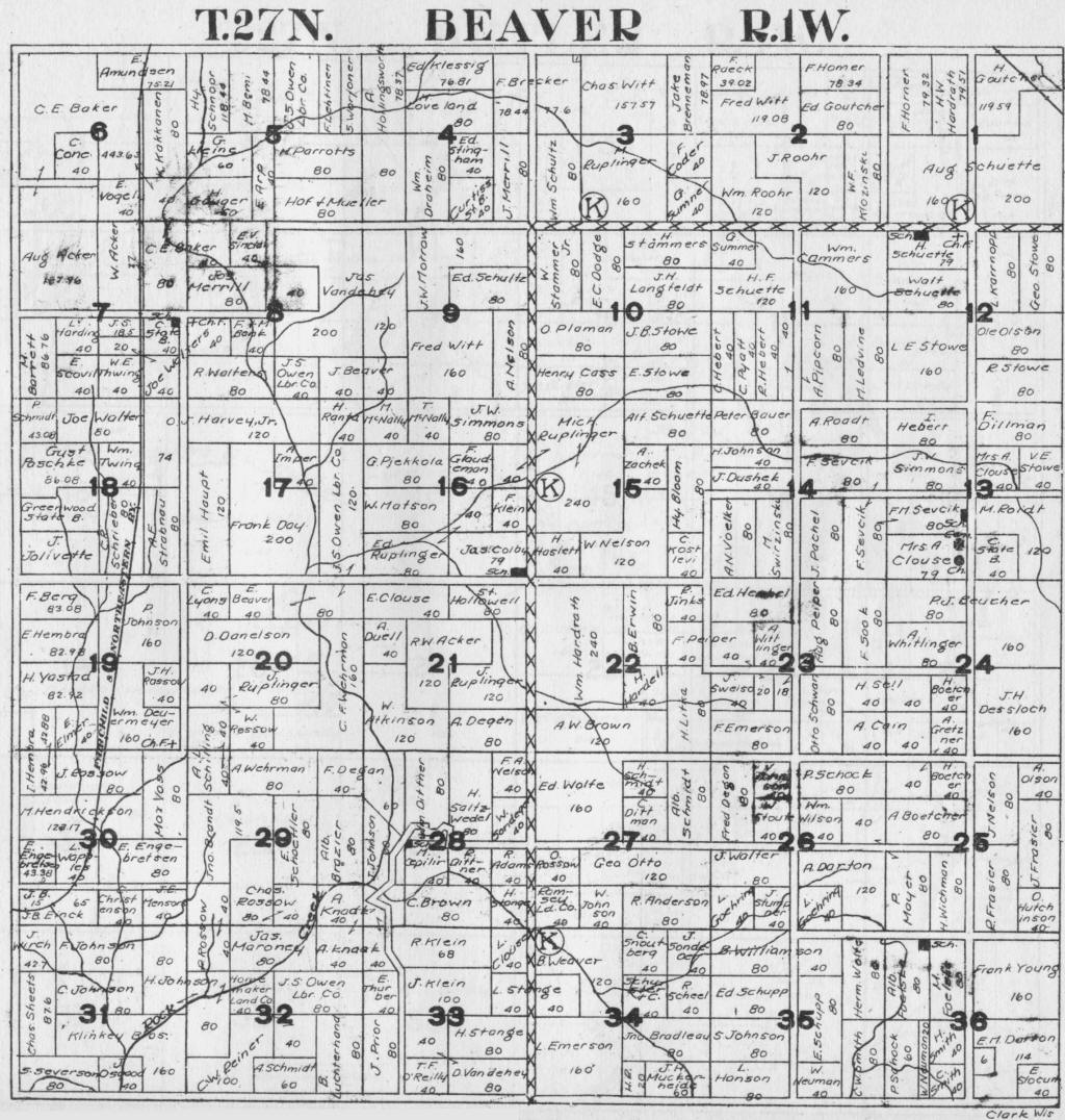 half of Plat Map from the Register of Deeds office, Clark Co., WI.