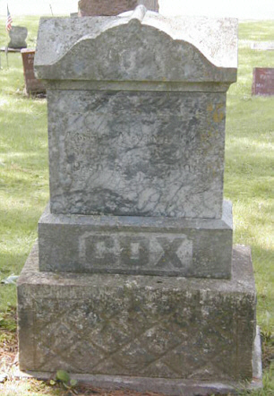 ton | Cox, Dorcase Elizabeth | 02-D022-01 | 12 May 1838 | 22 Nov 1911 | John Cox | Caleb Edmunds & Jennie Andrews | stone d. 1921 | |
