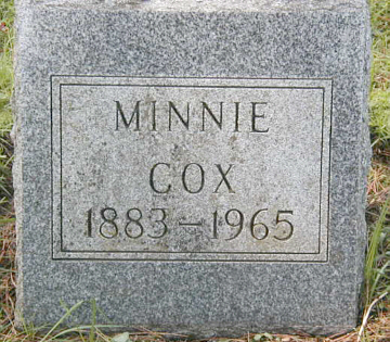 to | Cox, Minnie Lena | 11-D042-01 | 5 Jan 1883 | 30 Jun 1965 | Sidney J. Cox | 9 Jun 1915 | August & Fredericka (Schultz) Heiking | obit say b. 1884 |