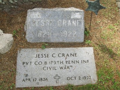 toy | Crane, Jesse (Civil War Vet) | 00-C066-04 | 12 Apr 1829 | 2 Oct 1922 | Mary Pounder | 13 Nov 1880 | Union army Co. B 179th reg. of Penn. Militia | |