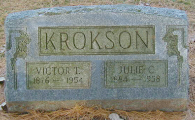 to | Krokson, Victor Theodore | 00-B063-7A | 9 Oct 1876 | 28 Dec 1954 | Julia Kolstad | 15 June 1910 | John & Ingrid (Johnson) Krokson | b. Sweden & d. home |