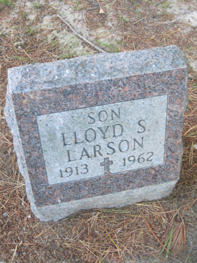 to | Larson, Lawrence H | 05-G010-06 | 29 Oct 1901 | 13 Apr 1984 | never m. | Harold & Anna (Aalbu) Larson | b. Warner Twp & d. his greenwood home | |