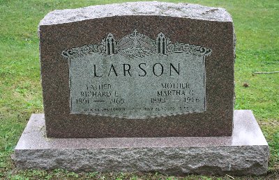 tsno | Larson, Richard E. | 02-G016-04 | 8 Oct 1891 | 27 Dec 1965 | Martha C. Schultz | 16 Oct 1913 | Charles & Mary Josephine Larson ? | |