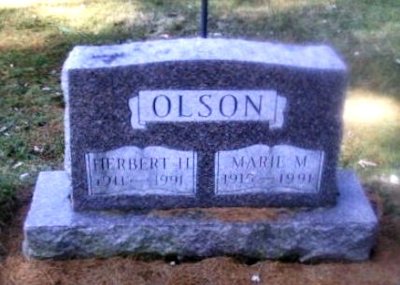 to | Olson, Herbert H. | 03-G013-02 | 4 Jun 1911 | 15 Jun 1991 | Marie M. Manier | 27 Jul 1931 | Herman J. & Ida Caroline(Anderson)Olson | b. Chicago & d. Appleton Medical Center |