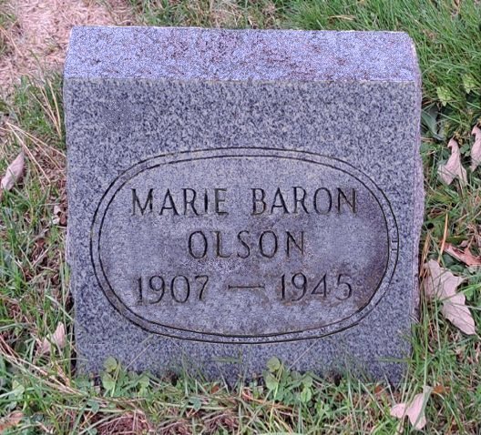 tso | Olson, Marie Baron | 04-D121-01 | 28 Feb 1907 | 29 Jun 1945 | Leo Olson | 28 Dec 1928 | Mr. & Mrs. Andrew Baron | b. town of Eaton & d. Marshfield hosp. |