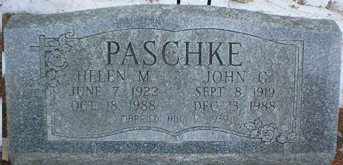 cf | Paschke, John G. | 00-B030-01 | 8 Sep 1919 | 13 Dec 1988 | Helen M. | 17 Aug 1939 | tomb. d. day 12th | |