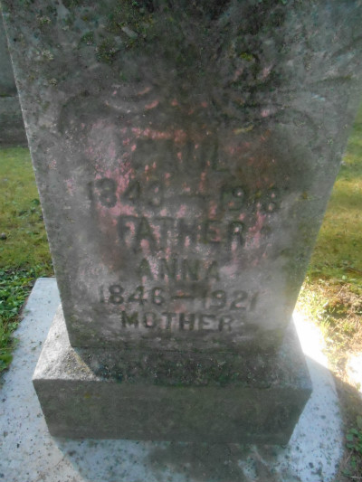 t | Rossman, Johanna "Anna"; #2 | 00-C053-02 | 10 Mar 1846 | 3 May 1921 | Paul G. Rossman | 12 Apr 1865 | Henry & Margaret (Schmutzler) Russler | B. Germany; D. Bemidji, Minn. |