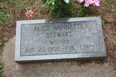 to | Stewart, Minnette Alice | 01-G010-02 | 20 Aug 1900 | 13 Feb 1975 | Robert A. Stewart Sr. | Thompson | ||