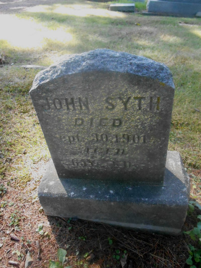 c | Syth, Thomas | 02-D066-01 | 20 Aug 1830 | 4 May 1904 | Sarah Shanks (2nd) | 1864 | John W. & Minnie K.(Cummins) Syth | |
