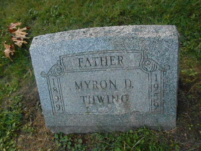 to | Thwing, Myron Duwell | 10-D085-04 | 25 Mar 1899 | 24 Oct 1959 | Iva Ethel Dimler | 3 May 1930 | ||