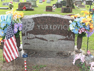 to | Yurkovich, Valentine Anthony; #2 | 01-G008-05 | 10 Feb 1911 | 21 Oct 1996 | Sylvia Jelercic | 7 Dec 1946 | Anthony & Josephine (Podobnik) Yurdovich | WWII - Army; b. Joliet, Ill & d. Marshfield hosp./ |