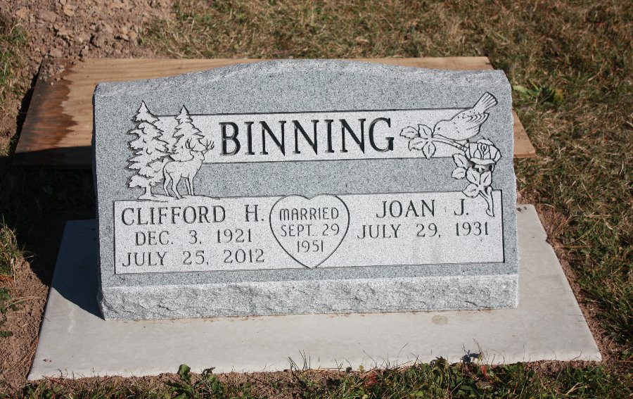 to | Binning, Clifford H. | 3 Dec 1921 | 25 Jul 2012 | Joan Luce | 29 Sep 1951 | Herbert & Inga (Lydicksen) Binning | ||