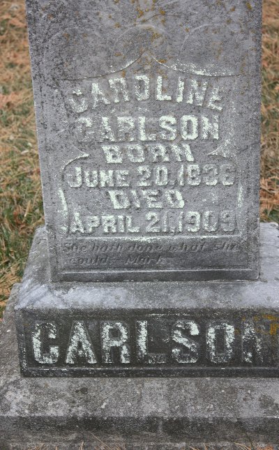 ct | Carlson, Caroline; #1 | 18/-/196 | 20 Jun 1836 | 21 Apr 1909 | ||||