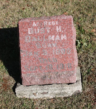 n | Dahl, Alvin | 21 Oct 1882 | 15 Jun 1910 | D. rcd 5-796 says buried here | Single | John & Helen (Dallman) Dahl | ||