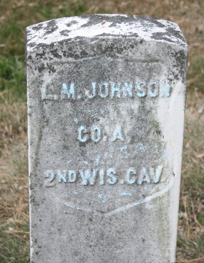 cto | Johnson, Loren Murray; #1 | 27/-/101 | 8 Jun 1839 | 20 Mar 1886 | Civil War-Co A. 2nd Wis. Cav(16 Oct 1961 - 3 Apr 1866); Chaplain & Clerk at Brigade HQ; Was a Brothertown Indian | Rowland & Almira (Fowler) Johnson | ||