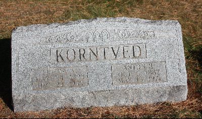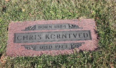cto | Korntved, Anton H. | 22/-/399 | 6 Oct 1887 | 15 May 1971 | Frieda A. Voth | 7 Jul 1910 | Andrew & Margaret (Peterson) Korntved | |