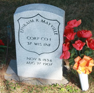 ctf | Mayville, Ephraim R. | 08/-/384 | 8 Nov 1830 | 26 Aug 1907 | Info provided by Jade Schmitt; Civil War-Cpl Co I 37 Wis Inf; Born in Vermont |
