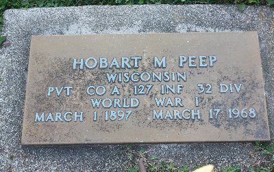 ct | Peep, Hobart M. | 02/-/129 | 1 Mar 1897 | 17 Mar 1965 | WWI-Wis. Pvt Co A 127 Inf 32 Div |