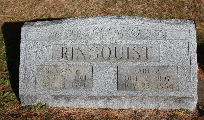 cto | Ringquist, Earl Alvin; #1 | 22/-/401 | 2 Oct 1897 | 23 Nov 1964 | WWI-PFC US Army | Gladys Korntved | 2 Oct 1928 |