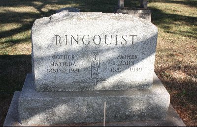 ct | Ringquist, Matilda | 09/-308 | Mar 1851 | 7 Aug 1931 | John Ringquist | 26 Oct 1874 | Olaf & Marie Lindstrom | |