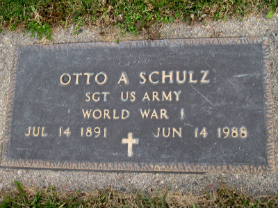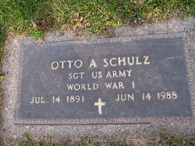Schulz, Otto A.; #2 | 14 Jul 1891 | 14 Jun 1988 | Age 96; D. St. Joseph's Hospital; WWI- Sgt. U.S. Army |
