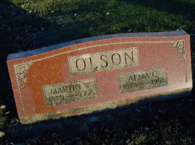 to | Olson, Alma C. | 12 Jul 1874 | 26 Sep 1951 | Aged 77 yr, 2 mo, 14 da; b. Mellerud, Sweden |