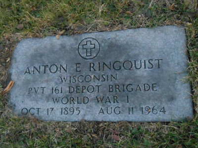 to | Ringquist, Anton Edward; #2 | 17 Oct 1895 | 11 Aug 1964 | WWI-Pvt US Army |