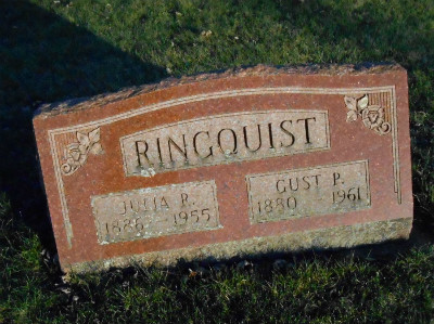 to | Ringquist, Julia R. | 2 Mar 1886 | 13 Apr 1955 | daughter of original Scandinavian settlers here |