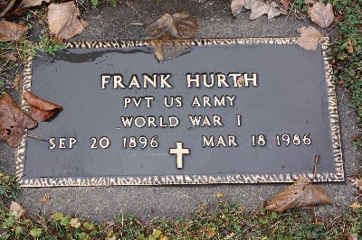 ctyb | Hurth, Frank | OB-25-01 | 20-Sep-1896 | 18-Mar-1986 | WWI- Pvt US Army | Margaret Tessmer | Henry & Eva (Ginsbach) Hurth | |