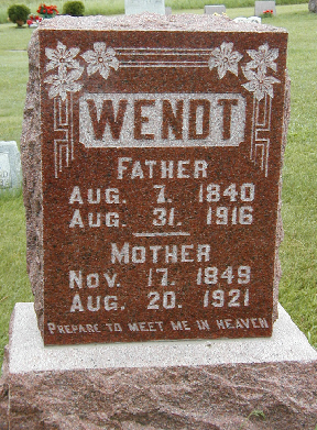 to | Wendt, Henry #1 | 7-Aug-1840 | 31-Aug-1916 | Anna Lohrberg | 14-Aug-1870 | William Sr. & ? Wendt | |