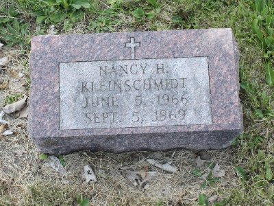xyo | Kleinschmidt, Nancy Hope | 5-Jun-1966 | 5-Sep-1969 | d. Heart ailment | Delmar & Viola (Hainzlsperger) Kleinschmidt | ||