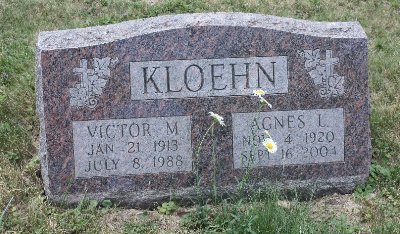 oy | Kloehn, Agnes Lucille | 4-Nov-1920 | 16-Sep-2004 | Victor M. Kloehn | 17-Jul-1939 | George & Anna (Bonlander) Theisen | |