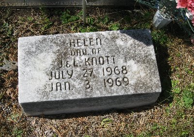 txo | Knott, Helen | 27-Jul-1968 | 3-Jan-1969 | Burned to death in house fire | Jerome & LaVina (LaFayette) Knott | ||