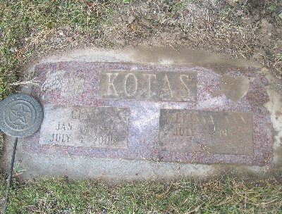 to | Kotas, Gene | 4-Jan-1931 | 4-Jul-2005 | Melissa Crawford | 10-Dec-1988 | Clarence & Ethelin Kotas (Raised him) | |