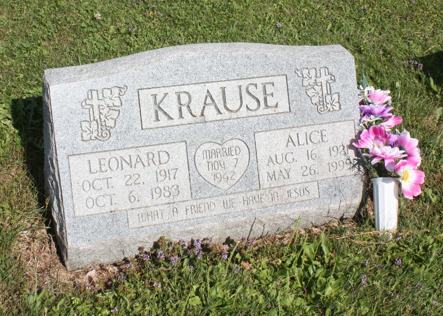 xy | Krause, Alice | 16-Aug-1921 | 26-May-1999 | Leonard Krause | |||