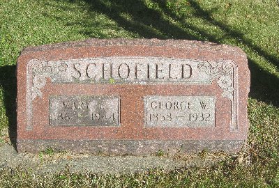 to | Schofield, George W. | 31-Mar-1858 | 29-May-1932 | Endora Meacham | 19-Apr-1892 | ||