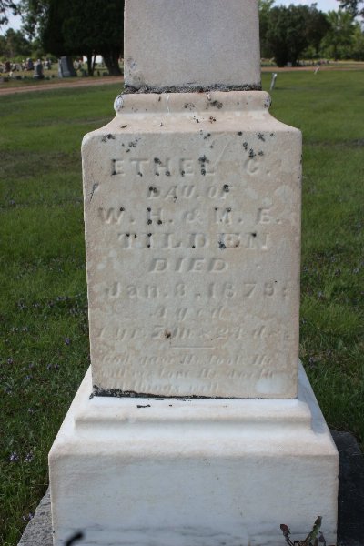 txy | Tilden, Ethel | 3-Jan-1879 | Age 1 yr, 7 mo,23 da | W.H. & M.E. Tilden | |||