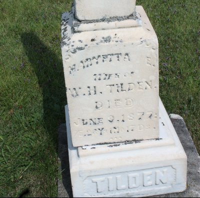 txy | Tilden, Maryetta | 9-Jun-1877 | Age 26 yr, 1 mo, 17da | H.W. Tilden | |||