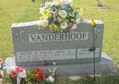 to | Vanderhoof, Archie B. | 20-Dec-1932 | 21-Sep-2010 | Nila J. Nelson | 2-Feb-1952 | Benjamin & Myra (Cole) Vanderhoof | |