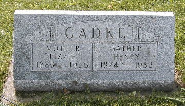 cto | Gadke, Henry | 16/5/3 | 1874 | 15 Sep 1952 | Lizzie | |||