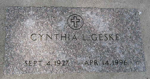 ct | Geske, Cynthia Lois | 14/7/1 | 4 Sep 1927 | 14 Apr 1996 | Clarence Geske | |||