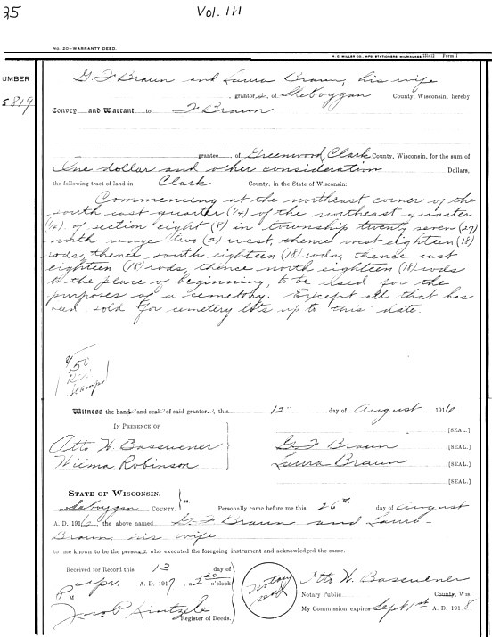 property where this cemetery is located to his brother, Fredrick.