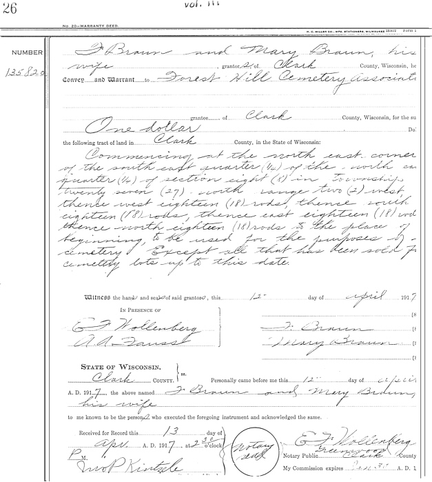 to the Forest Hill Cemetery Association and the