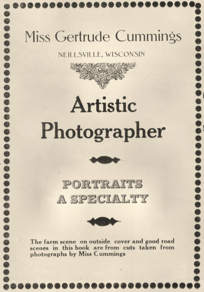 With diffidence to his profession, the editor of the Granton News and the publisher of this special Clark County edition, demurred at having any publicity in regard to himself or his paper in this issue, but his associate, his better half and close friends insisted that he come in for a share of the glory. For a decade or more he has been slowly but surely plugging for Clark County and is just now getting his stride. During the next few years, you are likely to hear from Publisher Baer as an enthusiast when it comes to promoting and developing and exploiting Clark County, the heart of Wisconsin. The zenith alone is the limit to his ambitions.