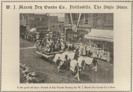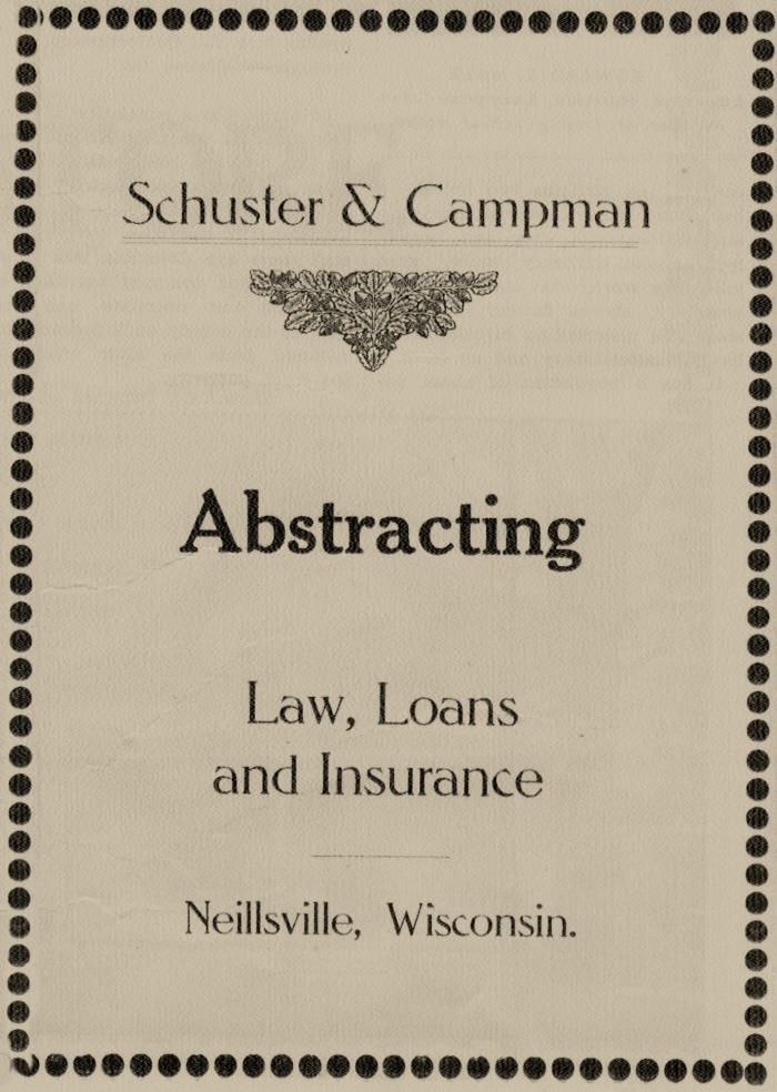 Like a sparkling gem In a beautiful setting or like a master’s picture in a beautiful frame, the city of Neillsville, county seat of Clark County, presents a most attractive sight nestled among the green hills and in the midst of wide expanses of fertile acres, where the dark currents of Black river tossing over the rocks mingles its murmuring with that of placid O’Neill creek. On a railroad which brings three passenger trains each way each day—one each way a through train from the metropolis of one state to that of another—sod with good improved roads leading out in each direction, north, east, south and west, to stretches of as fine farms as can be found anywhere in God’s green earth, with its court house surmounted by the blindfolded holder of Justice’s scales and its other public buildings outlined against the sky or against the background of encircling hills, with its blocks of busy marts and its streets of beautiful homes, surely Neillsville can take pride in the fact that it is a truly representative American city, a Wisconsin municipality, a Clark County capital, a city which has a history of which It Is not ashamed and a prospect for future growth and development which is its pride, boast and hope.