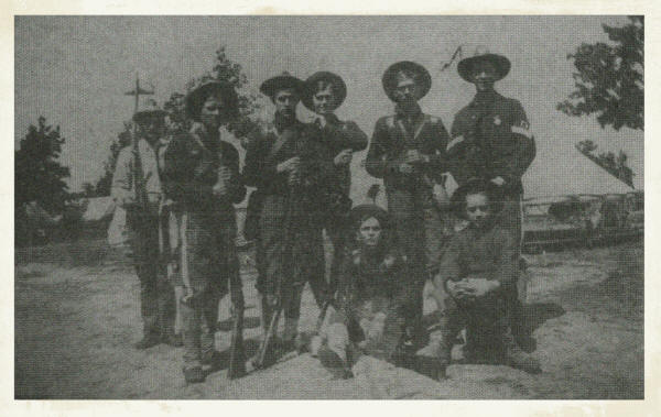 A Neillsville Guard Unit circa 1900, as pictured, (standing left to right) Riley Sherman, Allen Wildish, Paul Rindfleisch, George Rude, Bert Hart, Leo Redmond (seated) Bob Glass and Don Brewster. (Photo courtesy of Bill Roberts’ Collection)