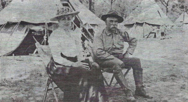 Lieut. Col. J. W. (Tom) Hommel and his second wife, Ida are shown sitting together, while relaxing at a visitors Day during a National Guard summer encampment. |