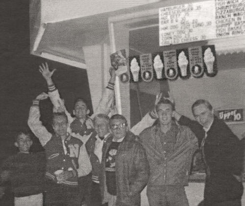 The A&W Root Beer Stand and The Penguin were favorite hang-outs after school in the spring. The Penguin located along Hwy. 10, near the intersection of South Hewett Street. The above mid-1960s photo taken of some high school students standing by the Penguin; (left to right): Ronny Svetlik, Ken Carl, Bill Knoff, Dick Schoengarth, Ron Marden, Steve Mabie and Ken Lindekugel. (Photo courtesy of Bob Boysen) |